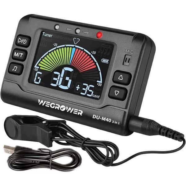 7번: 메트로놈 튜너 기타 베이스 바이올린 우쿨렐레 및 크로매틱 클라리넷 트럼펫 플루트 모든 악기를 위한 충전식 3인치 디지털 튜너 톤 발생기, MetroTuner, 1개