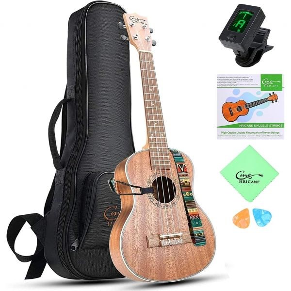 21번: 히케인 테너 우쿨렐레 26인치 초보자용 프로 가방 포함 UKS3 세이플 하와이안 디지털 튜너 스트랩 4개 스트링 세트 픽 청소용 천, Sapele Soprano, 1개