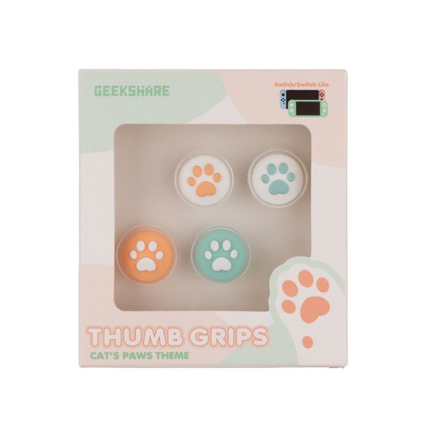27번: GEEKSHARE 닌텐도 스위치 앤 스위치 라이트 호환 냥발 파스텔 조이콘 스틱커버 민트그린 앤 오렌지, 1세트