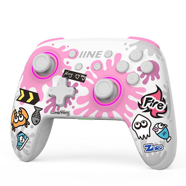 30번: 이이네 스위치 게임 디자인 무선 컨트롤러 NFC 지원 터보 매그로 설정 지원 게임 컨트롤러 닌텐도/PC Steam 호환, 스플래툰 핑크색, 1개