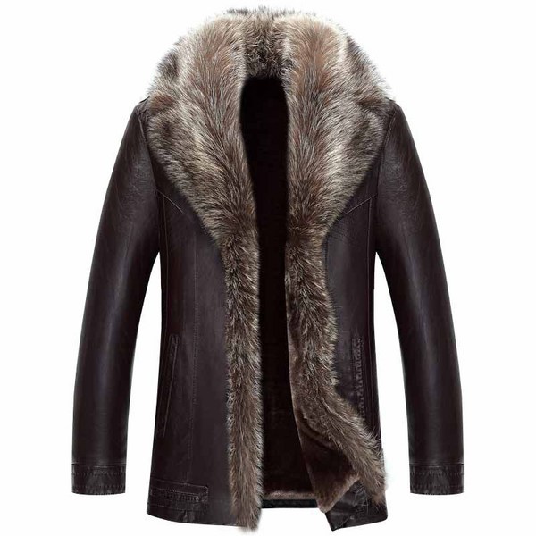 25번: TMJ 남자 무스탕 자켓 가죽 남성 리얼 너구리 모피 칼라 인조 겨울 두꺼운 코트