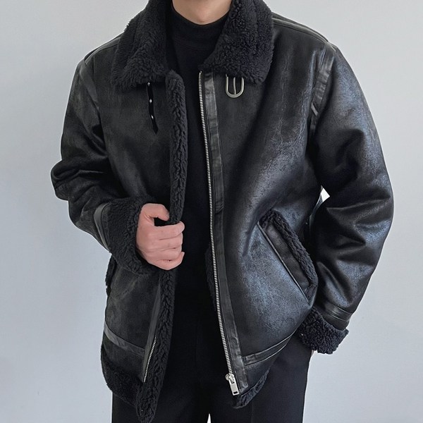 16번: 남자가죽무스탕 남성 양털 코트