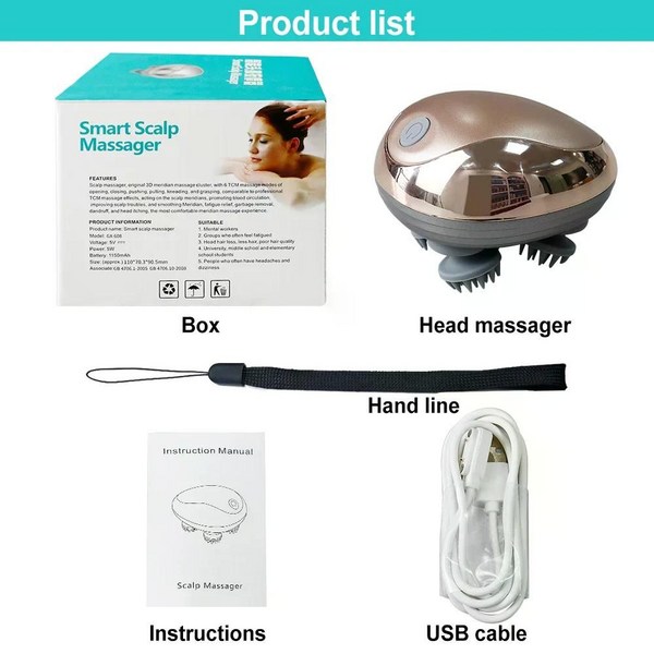 26번: 전동두피마사지기 두피마사지기계 안마 두통 스트레스 완화 휴대용, Gold