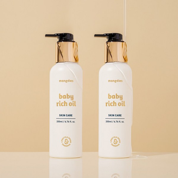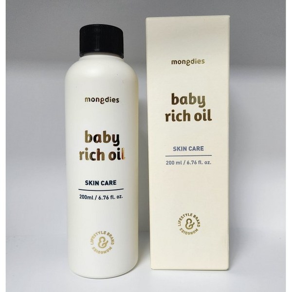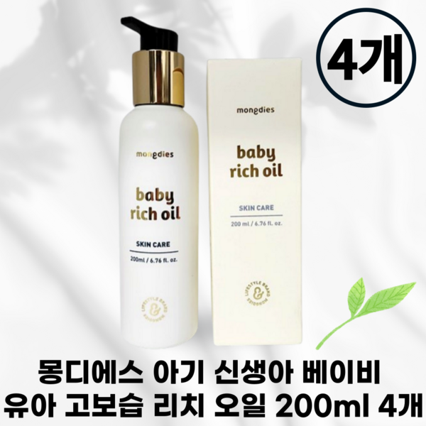 1번: [국내정품] 1+1 MONGDIES 몽디에스 오일 리치오일 바디오일 베이비 신생아오일 베이비오일 아기바디오일 아기 신생아 베이비 유아 고보습 리치 오일, 4개, 200ml