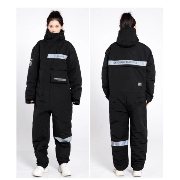 18번: ZHINUO 지누오 오토바이 방풍복 패딩 우주복 일체형 스즈끼복 겨울 작업복 배달 방한복 라이딩 낚시복 스키복 허리 저퍼 허리 조절, 멜란지 그레이, L