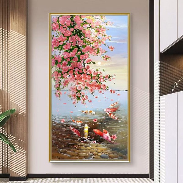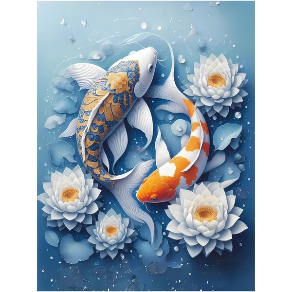 16번: 부귀길조 잉어 연꽃 3D 보석십자수 캔버스 액자 세트 부귀 길조 풍수 인테리어 재물 번영 대형 와이드 캔버스 스트레스 해소 취미생활 행복 행운 풍요 부르는, 4, 30*40cm (액자 없음)