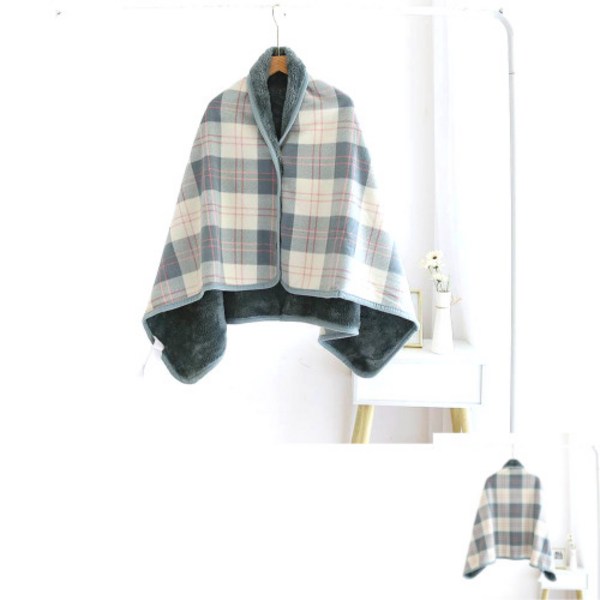26번: 마니또선물 체크무늬 두꺼운 무릎담요 극세사 망토 망또 똑딱이 입는담요 회사 오피스 동료, 999개, 체크블루