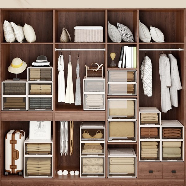 29번: 리빙박스 수납 정리함 플라스틱 슬라이딩 서랍 투명 다용도 수납함 옷장정리 옷정리함 3518, 브라운, 1개, 53*39*30