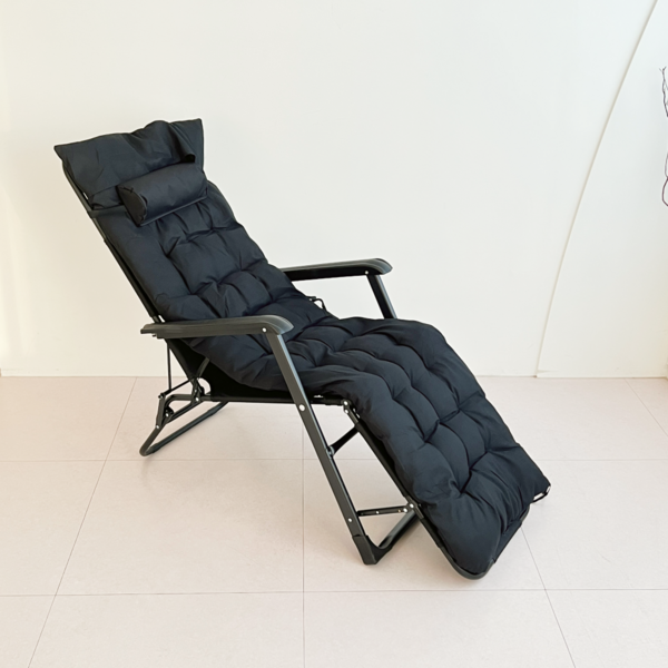 5번: 오브민 리클라이너 접이식 침대의자 + 쿠션매트 + 베개 특대형, 블랙