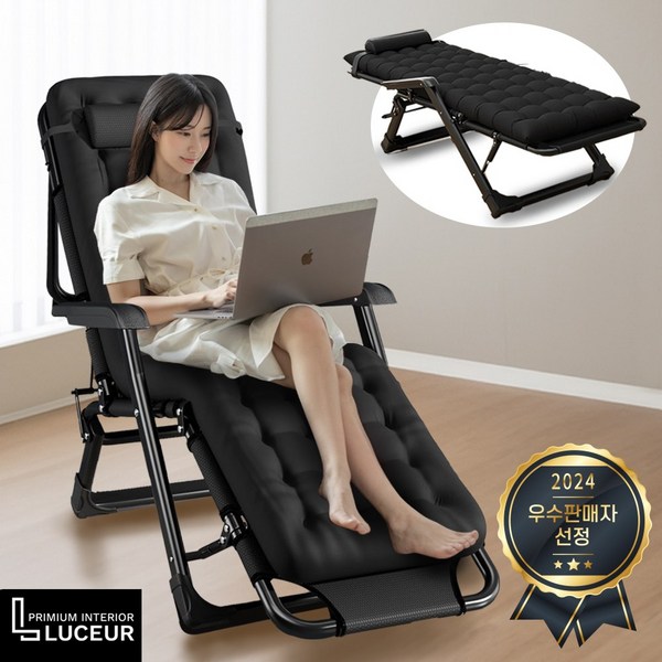 6번: 오브민 리클라이너 접이식 침대의자 + 베개 특대형, 1개, 블랙