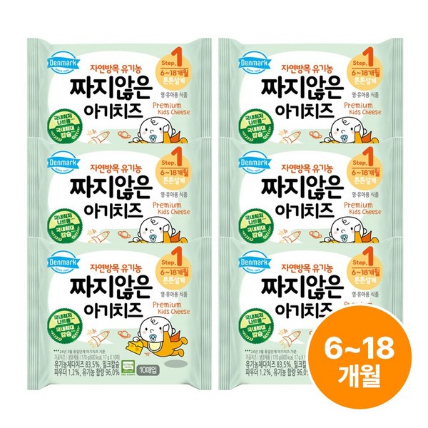 7번: 덴마크 자연방목 유기농 짜지않은 아기치즈 1단계 170g, 6개