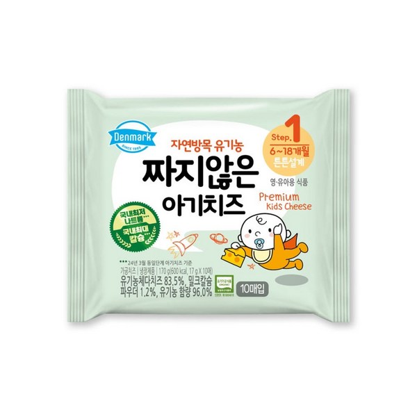 13번: 덴마크 자연방목 유기농 짜지않은 아기치즈 1단계, 170g, 8개