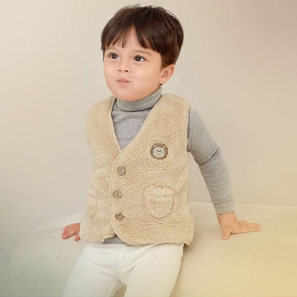 26번: [KC인증 당일출고]베스더스 유아동 아기 봄 가을 간절기 겨울 실내 조끼 보온 기모 잠옷 홈웨어 파자마 어린이집 생일 선물, 80, 블루 × 블루, 1개