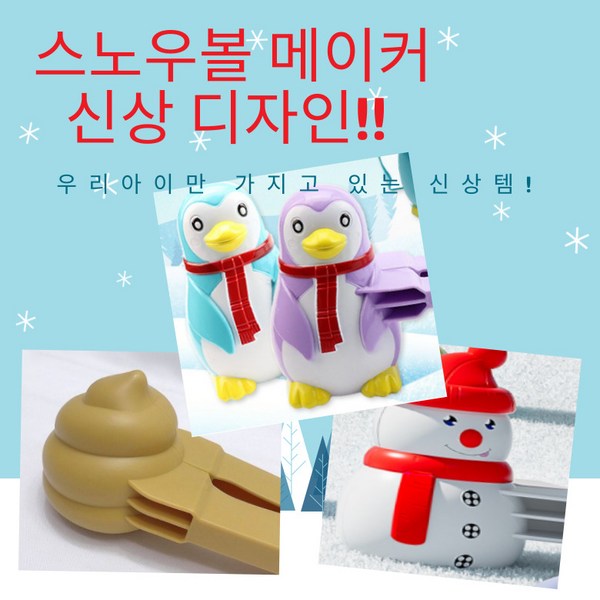 30번: [최고품질 당일발송] KC인증 로앤제이 눈오리집게 크리스마스 스노우볼메이커 눈뭉치 제조기 산타 루돌프 펭귄 하트, 혼합, 50g, 1개, 2.와 겨울이다!(4종)