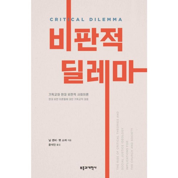 4번: 비판적 딜레마:현대 비판 이론들에 대한 기독교적 대응, 비판적 딜레마, 닐 셴비, 팻 소여(저) / 윤석인(역), 부흥과개혁사, 닐 셴비,팻 소여 저/윤석인 역