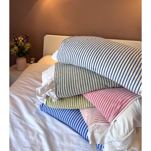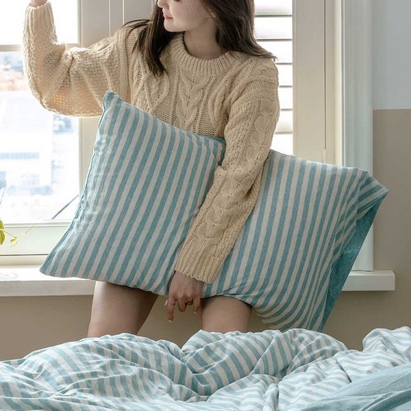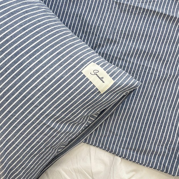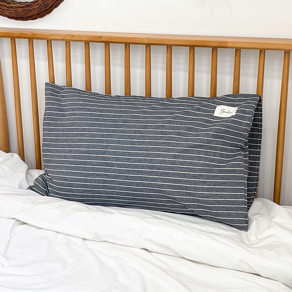 26번: 선재상점 타올베개커버 자루형 부드러운 순면 베개피, 1개, 48×74한쌍 데님 블루 얇은 스트라이프