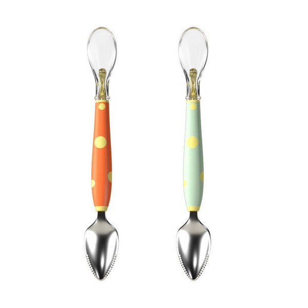 7번: AOHAO 아기 투웨이 과일 버섯 숟가락 스크래치 숟가락 이유식 실리콘 숟가락 스테인리스 숟가락 식기, 그린