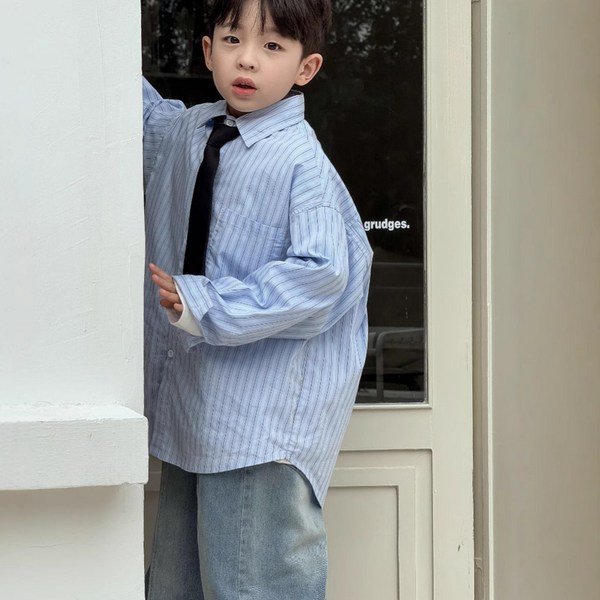 16번: 유블리 남아용 자수 스트라이프 카라 셔츠