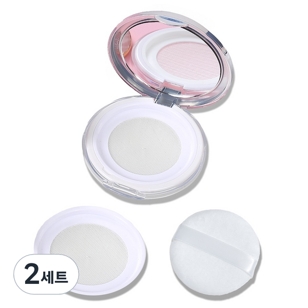8번: 파우더 용기 가루파우다 케이스 공병 보관용기 밀폐용기 투명용기 퍼프포함 휴대용 파우더소분 가루화장품 공용기 여행용, 2개, 핑크