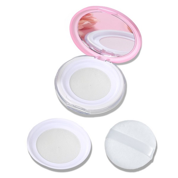 26번: 휴대용 가루망 용기 파우더 케이스 파우더 공병(시버 +핑크/1+1), 1개