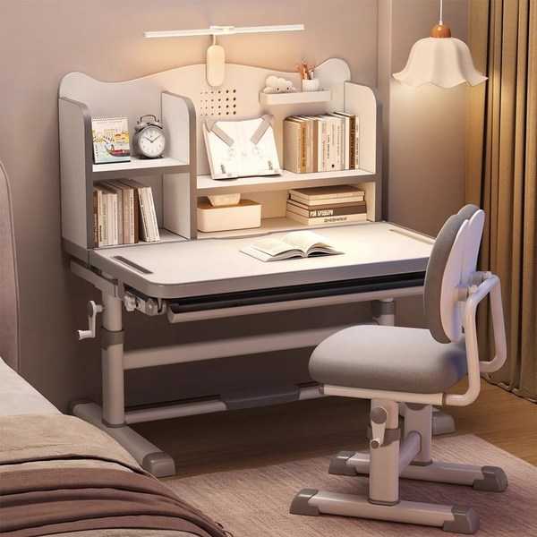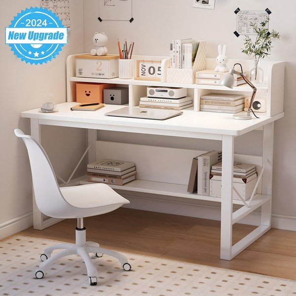 23번: 선반 컴퓨터 책상 올인원 LED 컴퓨터책상 게이밍책상 사무용책상 학생책상 서재책상 브라운/화이트 1인용 2인용 테이블 사이즈 120cm*60cm 고도 165cm, 화이트