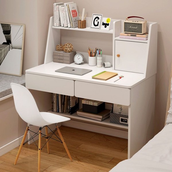 20번: 선반 컴퓨터 책상 올인원 컴퓨터책상 게이밍책상 철제책상 코너책상 사무용책상 타공판책상 올인원책상 호두색/화이트 테이블 사이즈 120cm*60cm*174cm, 화이트
