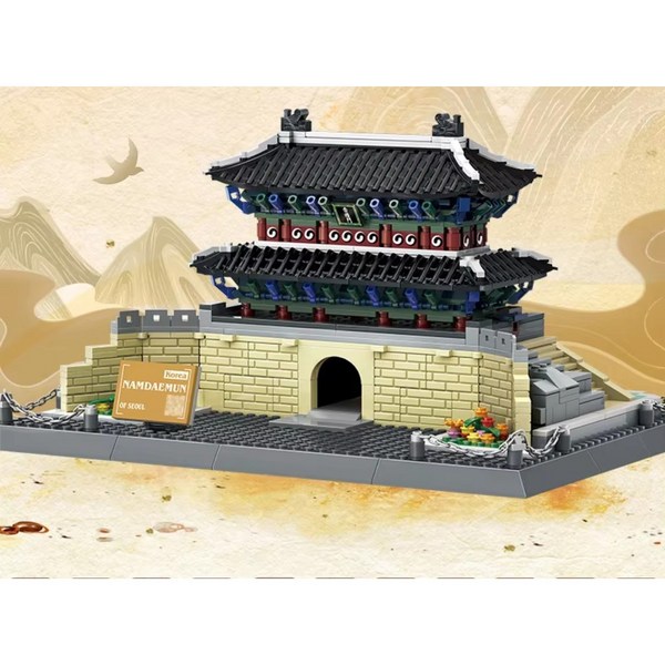 12번: 숭례문 남대문 도시 랜드마크 건축 모형 한국 아토 블록 세트 조립 벽돌 장난감 성인 어린이 선물 레고호환, 혼합 색상, 1개