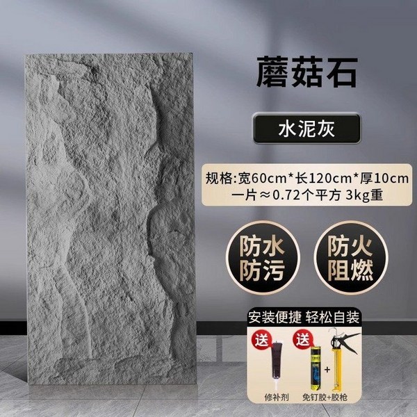 10번: 칸막이 경량 벽돌 ALC블록 블럭 폼블럭 인테리어 벽 pu 돌 슬레이트 외벽 타일, e. 버섯돌 시멘트그레이 두께10cm, 1개