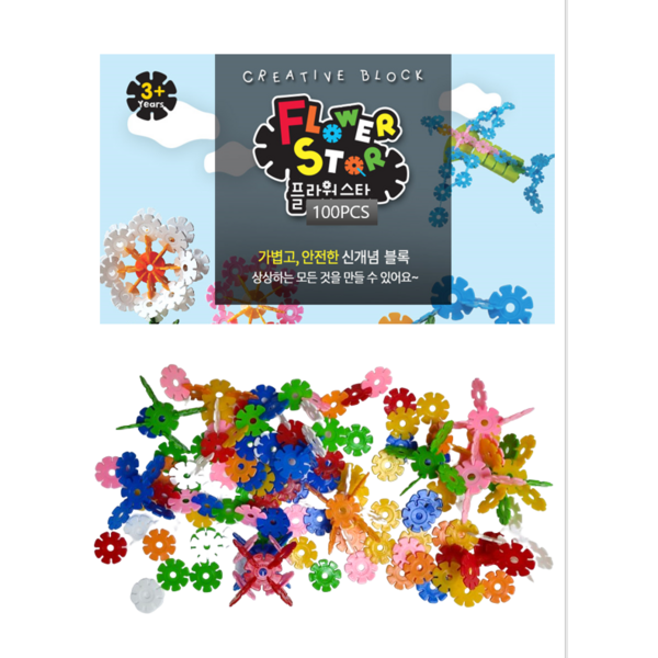 1번: 플라트블럭 꽃블럭 소근육 창의력발달 뇌운동 큰사이즈 블럭 KC인증 국내산, 100pcs, 0