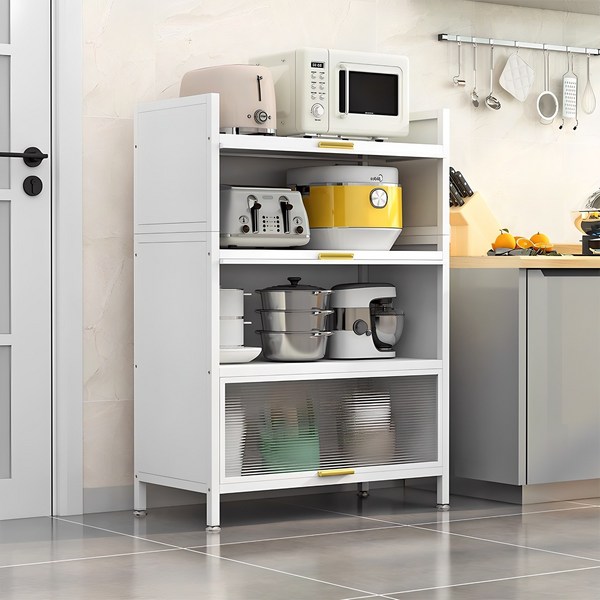10번: 스피세프 주방 수납장 전자렌지 밥솥 부엌 철제 수납 가구, 흰색, 4단