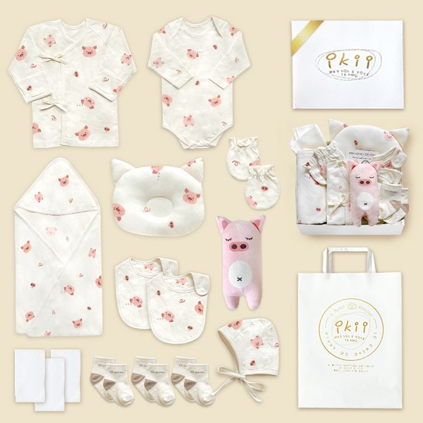 30번: 이키 유아용 오가닉 배냇저고리 긴소매 15종 출산 선물세트 선물포장 + 쇼핑백