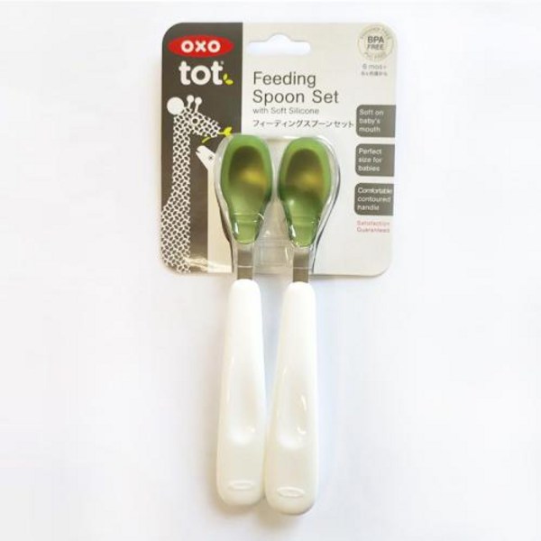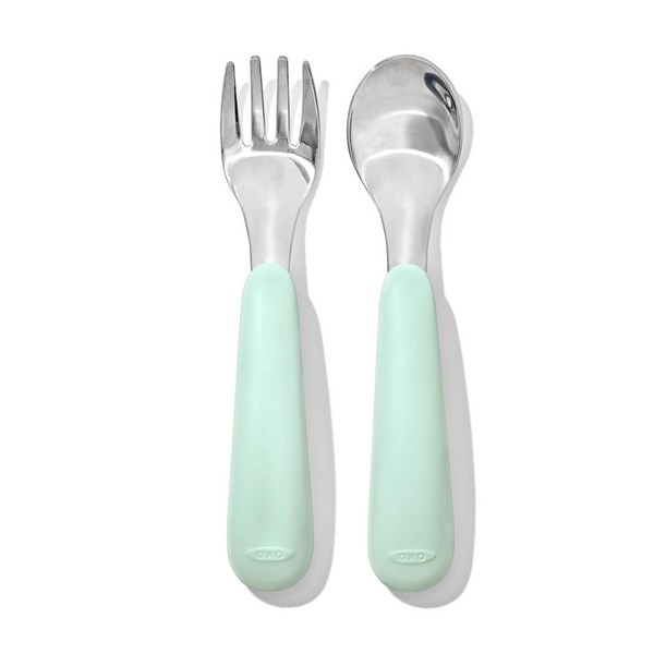 16번: 미국 OXO 이유식 포크 스푼 키즈 포크 스푼 스테인레스 스틸 휴대용 아기 밥 먹기 아기 포크 스푼 작은만 같은 디자인, 실리콘 스푼 2종 세트 연두색, 1개