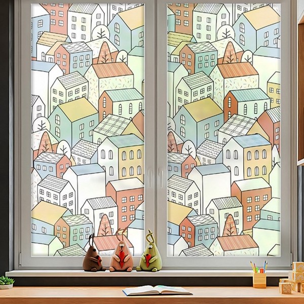 23번: SAIVEINA 자외선 차단 사생활 보호 유리 창문용 무점착 창문시트지 흔적없이 간편제거 반복 사용가능 물로 붙이는 글라스시트지 스테인드글라스 시트지 90CMX400CM, 멀티