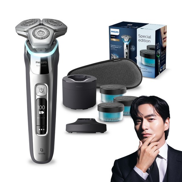 27번: LifeSync 전기면도기 남성용 수염 100 분 연속 가동 회전식 27 매 칼날 360회전 헤드 건습 겸용 USB 충전 IPX7 방수 물 세척 가능 잠금 기능 LCD 잔량 표시, 블루