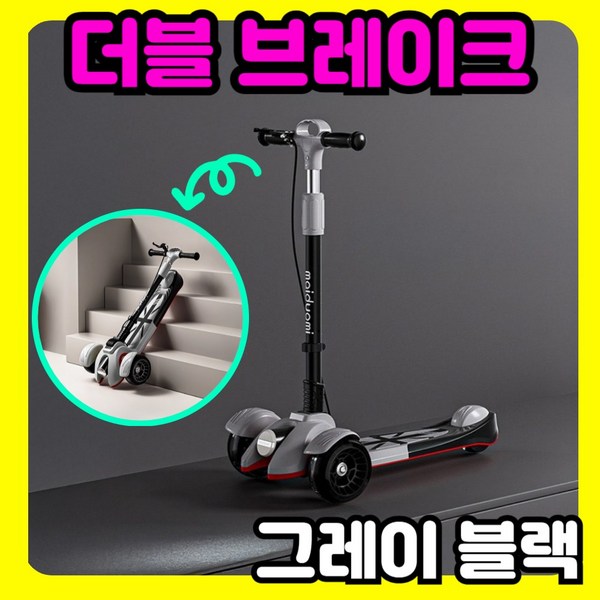 29번: 마이두미 더블 브레이크 킥보드 안전 LED 디럭스 킥보드 cm 맥시 미니 49 작은 교체용 킥보드색상선택 핸드, 그레이블랙, 1개