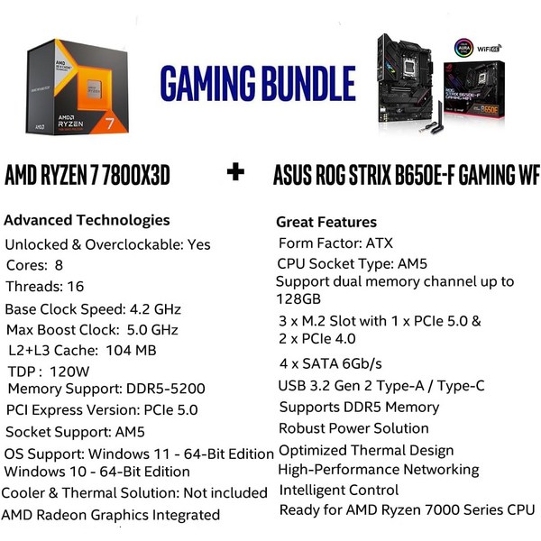 19번: 내륙 AMD Ryzen 7 7700X 8코어 16 스레드 AM5 잠금 해제 데스크톱 프로세서 번들과 ASUS TUF 게이밍 B650PLUS WiFi DDR5 PCIe 5.0 7, AMD Ryzen 5 4500 + ASUS Prime, 1개