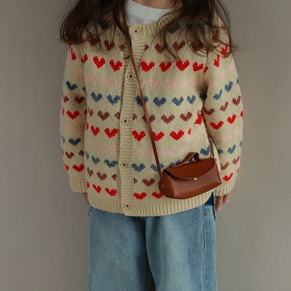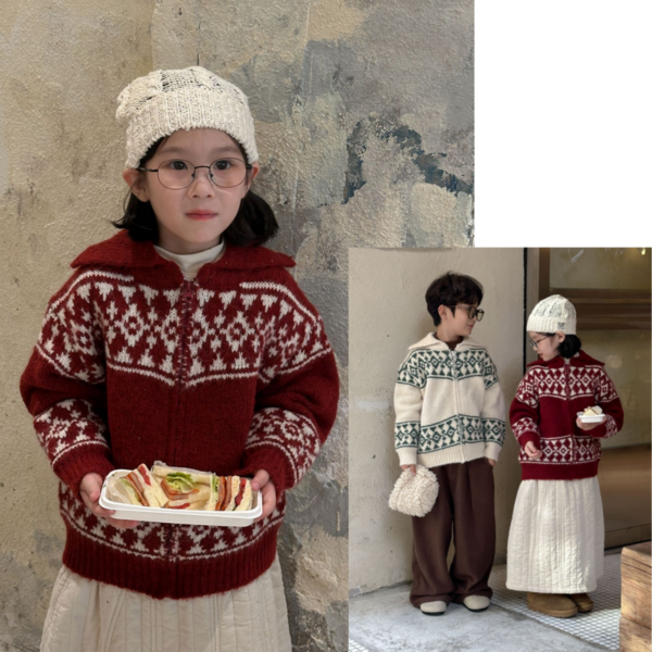 21번: 하와즈 남아 여아 공용 자가드 패턴 니트 집업 가디건 봄 가을 겨울 니트가디건