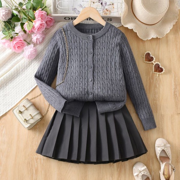 7번: 크리스탈하우스 여아 하객룩 케이블 가디건 스쿨룩 치마 상하복 CE010