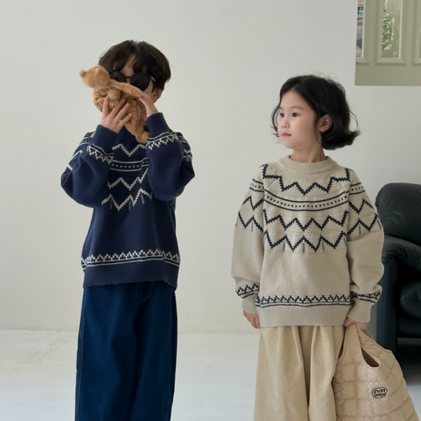 8번: 하와즈 아동/주니어 남여 공용 니트 형제 커플 물결무늬 니트