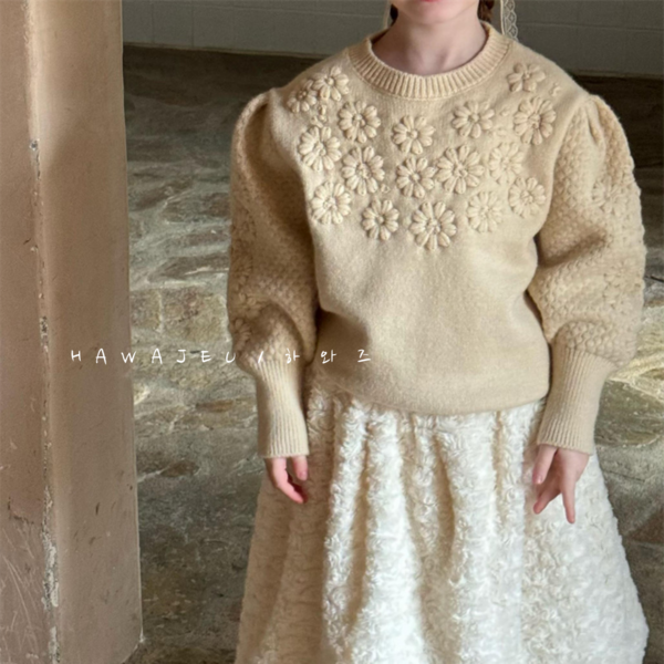 3번: 하와즈 여아 플라워 자수 니트 핸드메이드 꽃 니트