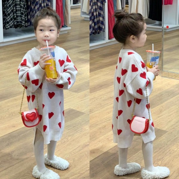 22번: 삐삐네옷가게 여아 키즈 러브하트 니트 롱 원피스