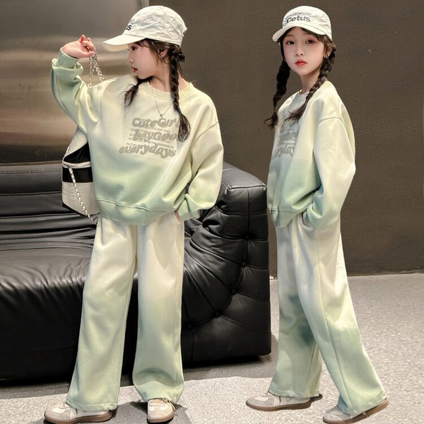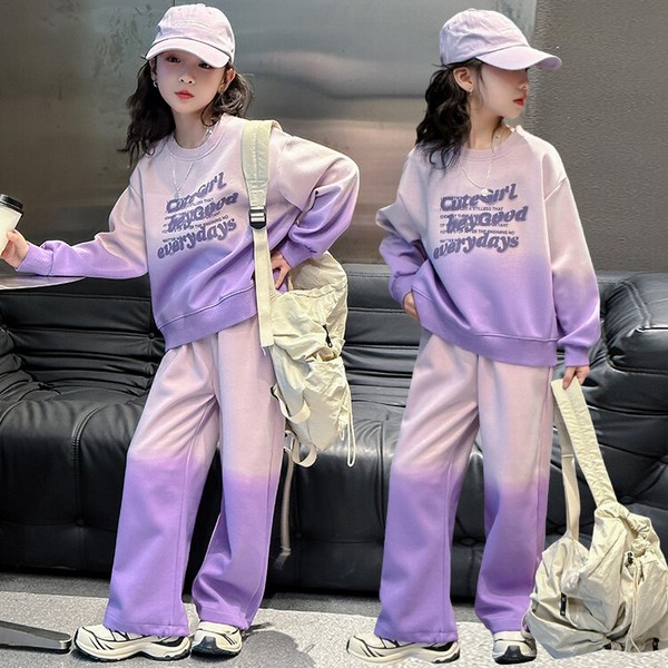 30번: 비비키드 여아 봄 가을 초중생 상하복 세트 주니어 긴팔티 상의+하의 세트 초등생 긴바지 그라데이션 맨투맨 세트 cute girl (DIAORANTAOZHUANG2406)