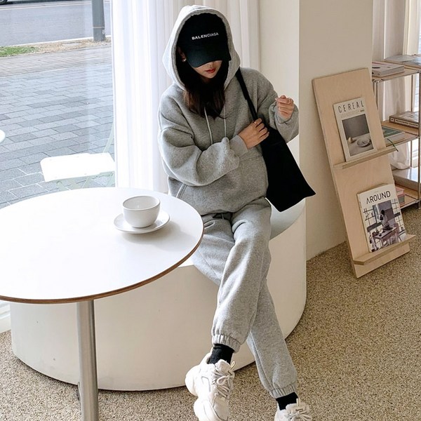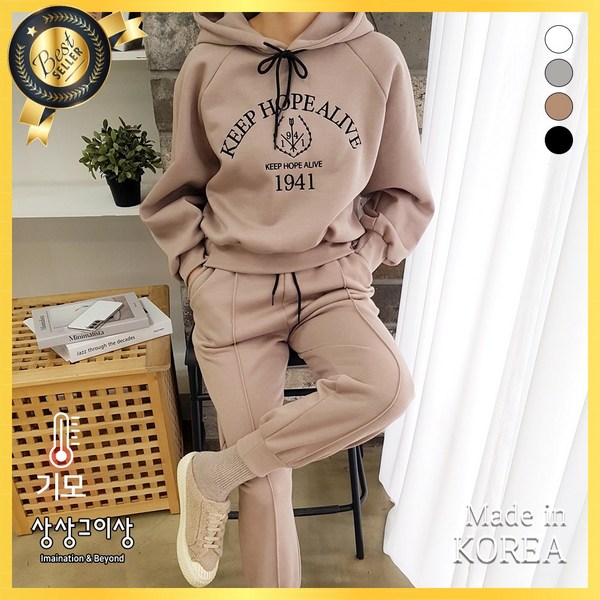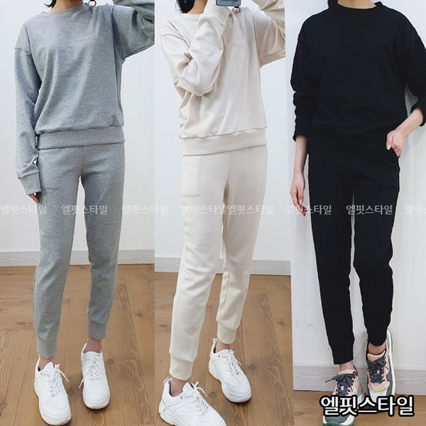 7번: 상상그이상 여성용 국내제작 1928 기모세트 부드러운 원단 고급소재 따뜻한 특양면소재 가성비 좋은 심플한 맨투맨 조거팬츠 세트 편하게 입기좋은 가벼운 트레이닝 운동복코디