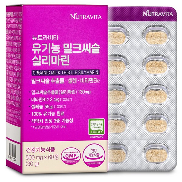 1번: 뉴트라비타 유기농 밀크씨슬 실리마린, 1개, 60정