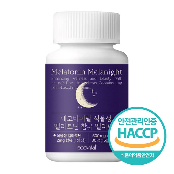 27번: 에코바이탈 멜라토닌 식물성 HACCP 식약처 인증 수면 유도제 1일 2mg 함유, 1개, 30정