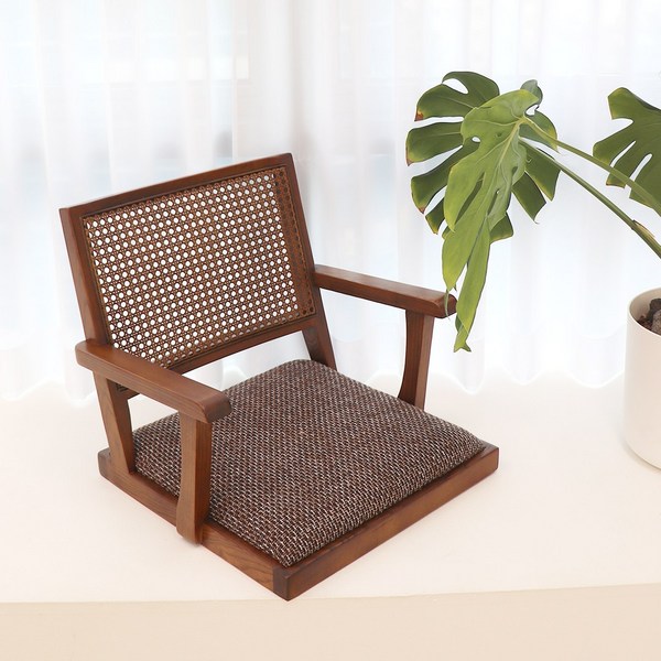 6번: 파스텔우드 AB라탄 좌식의자 코타츠 팔걸이 원목좌식의자, 브라운, 1개