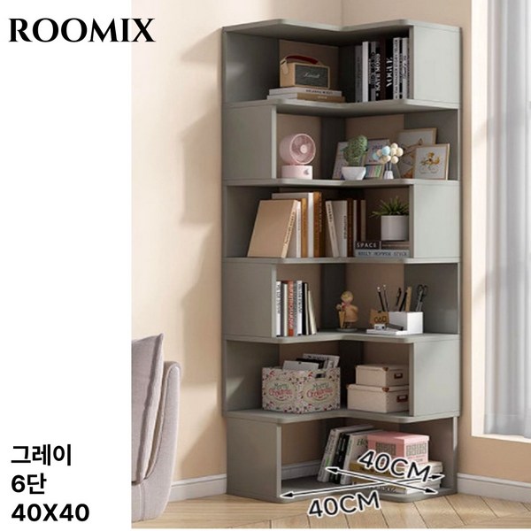 16번: 루믹스 틈새 코너장 틈새장 선반 책장 수납장 코너 책장 모서리 낮은 키큰 수납 장식장 가구, 6단, 그레이
