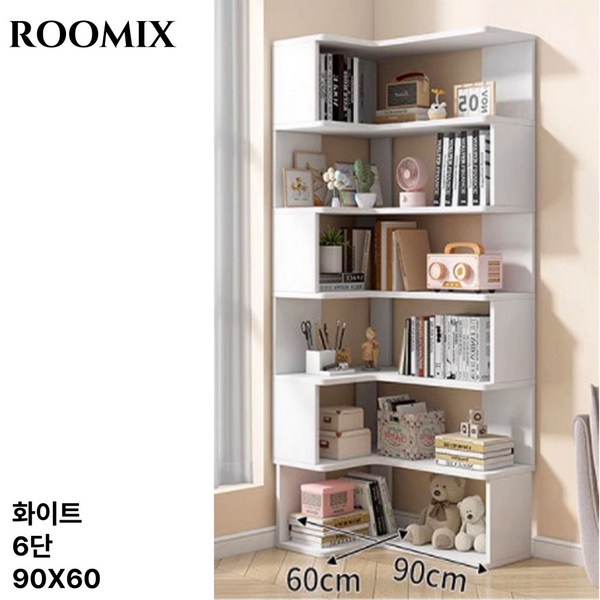 10번: 루믹스 틈새 코너장 틈새장 선반 책장 수납장 코너 책장 모서리 낮은 키큰 수납 장식장 가구, 6단, 화이트