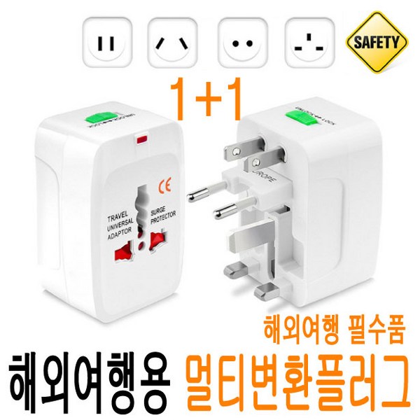 26번: (1+1) 해외 여행용 변환 플러그 돼지코 USB 올인원 해외용 220V 110V 어댑터 멀티탭 전세계 미국 일본 대만 중국 홍콩 싱가포르 필리핀 유럽 호주 해외여행 JNHKR, 1. 전세계 변환플러그 (올인원_일반형/1+1), 1개