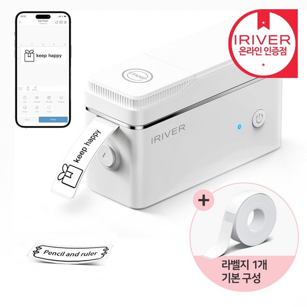30번: 아이리버 무선 블루투스 휴대용 미니 라벨 프린터 ILP-P31S 라벨출력기 네임프린터 전용앱 간편컷팅 노잉크 감열식 C타입충전 방수라벨 네임스티커 라벨스티커 도시락반찬스티커 라벨기, 1개, 라벨프린터